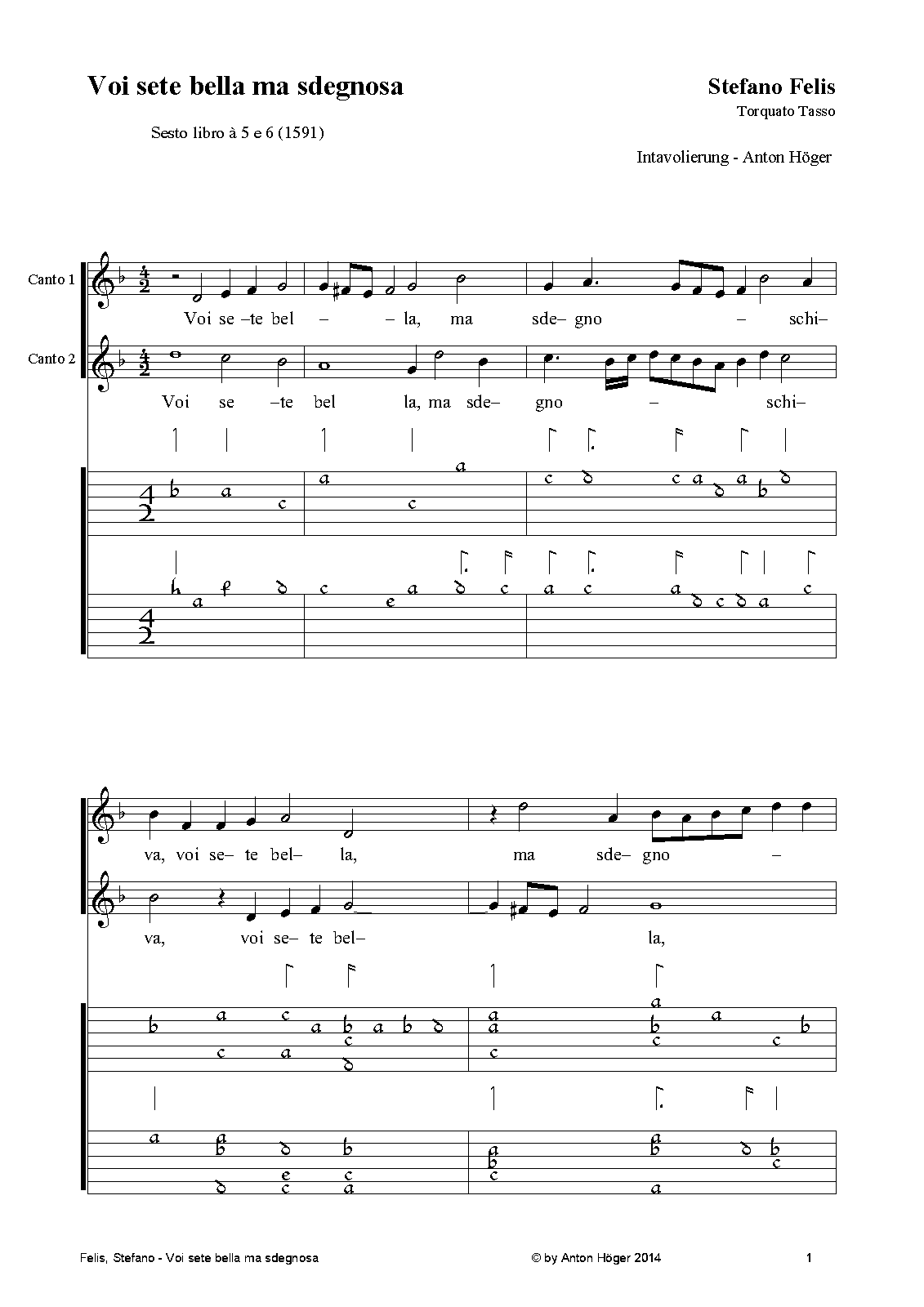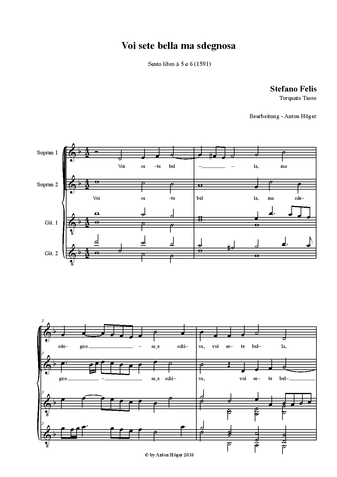 1591 in Il Sesto Libro de Madrigali à Cinque voci, con alcuni a Sei, et vn dialogo à Sette nel fine, etc.