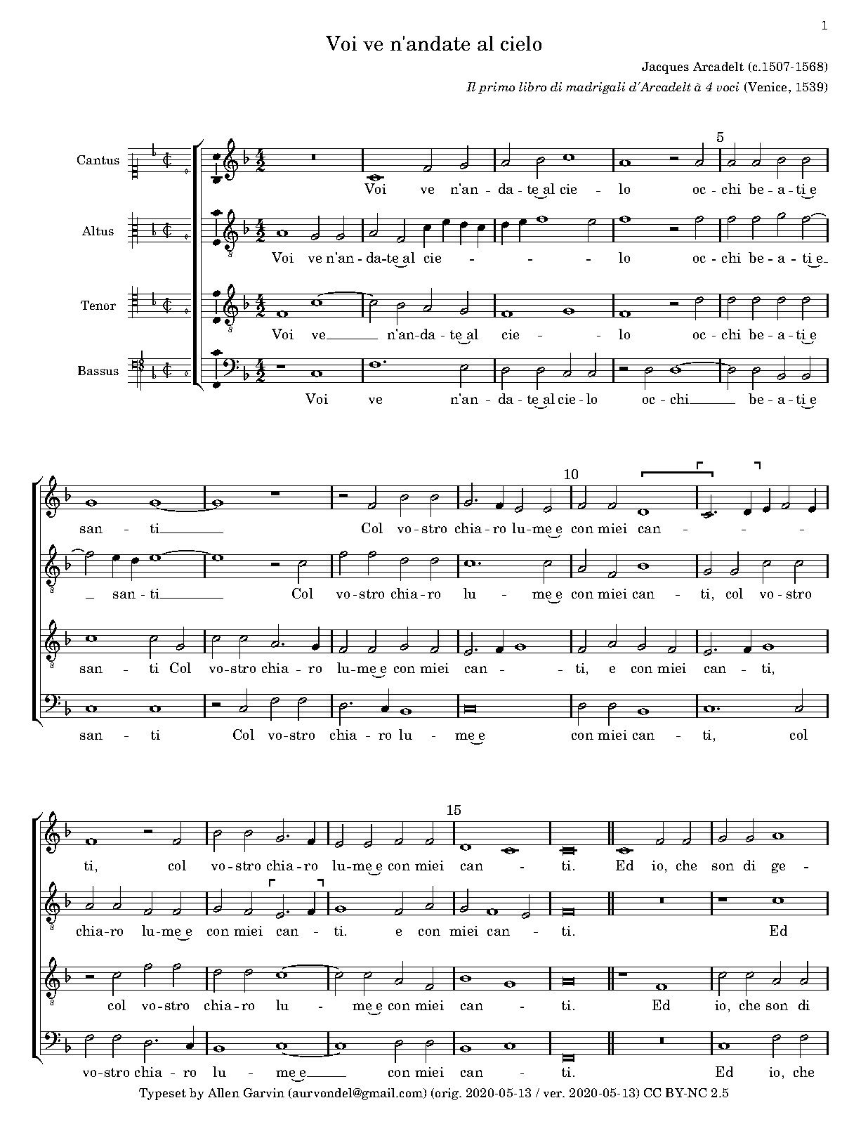 | First Publication. | 1539 in Madrigali a 4 voci, Libro 1 (No.7) |