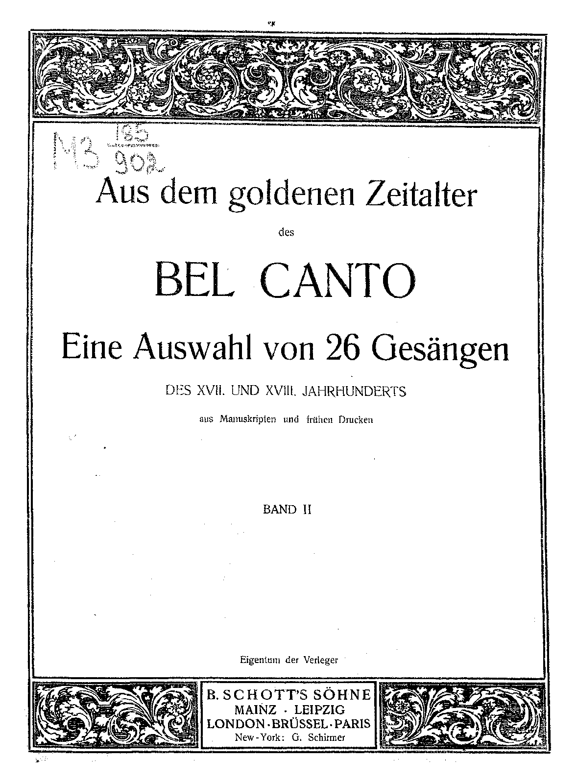 | Alternative. Title | Aus dem goldenen Zeitalter des Bel Canto: Eine Auswahl von 26 Gesängen des 17. und 18. Jahrhunderts |