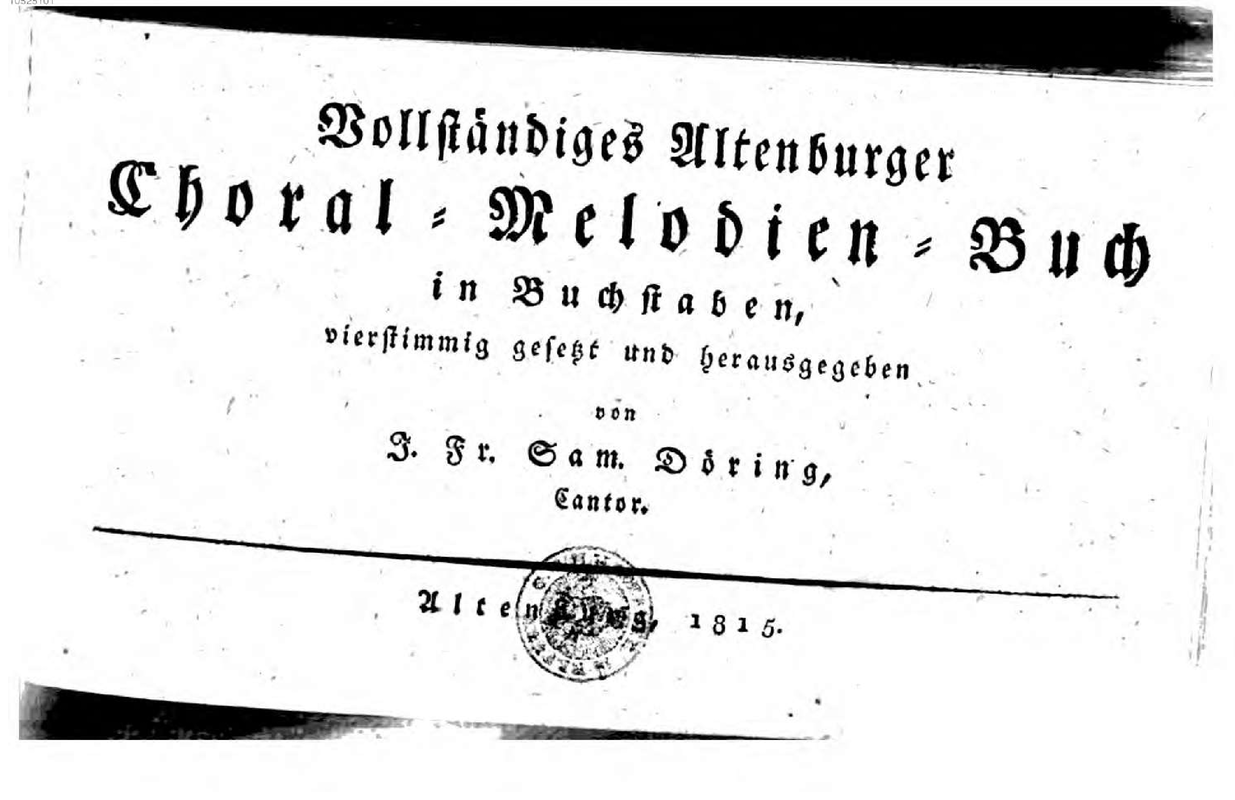 Vollständiges Altenburger Choral-Melodien-Buch in Buchstaben, vierstimmig gesetzt und herausgegeben von J. Fr. Sam. Döring, Cantor.