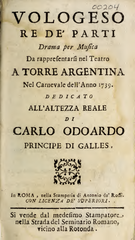 | Work Title | Vologeso, re de' Parti |