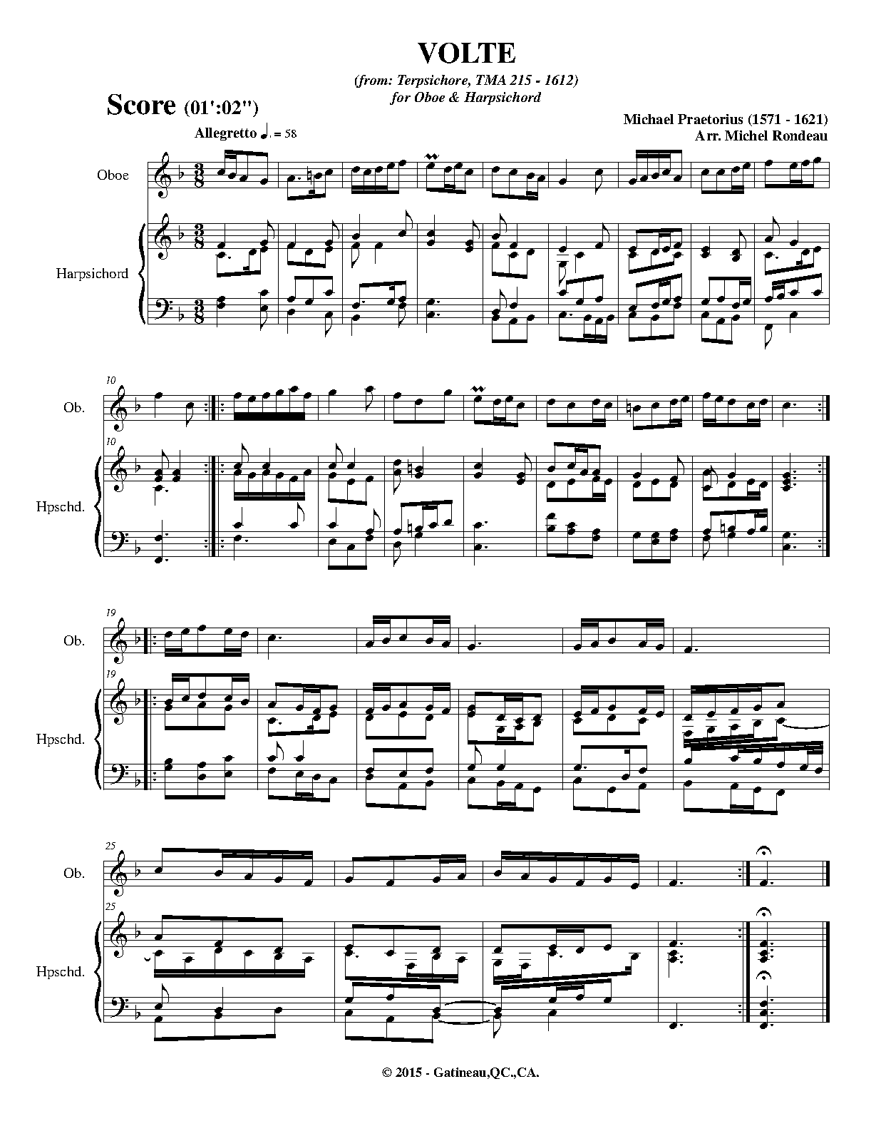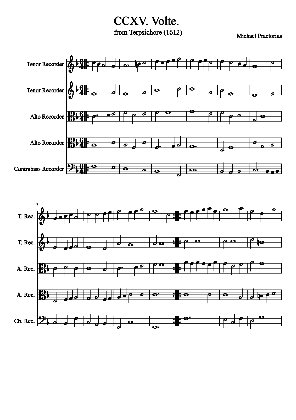 | Extra Information | These pieces were assembled and arranged by Praetorius for his 1612 collection. It is unknown how many, or if any, of the works in the collection were actually composed by Praetorius as opposed to being popular dance tunes arranged by him. The instrumentation is not specified in the original, and simply listed as "à 5". |