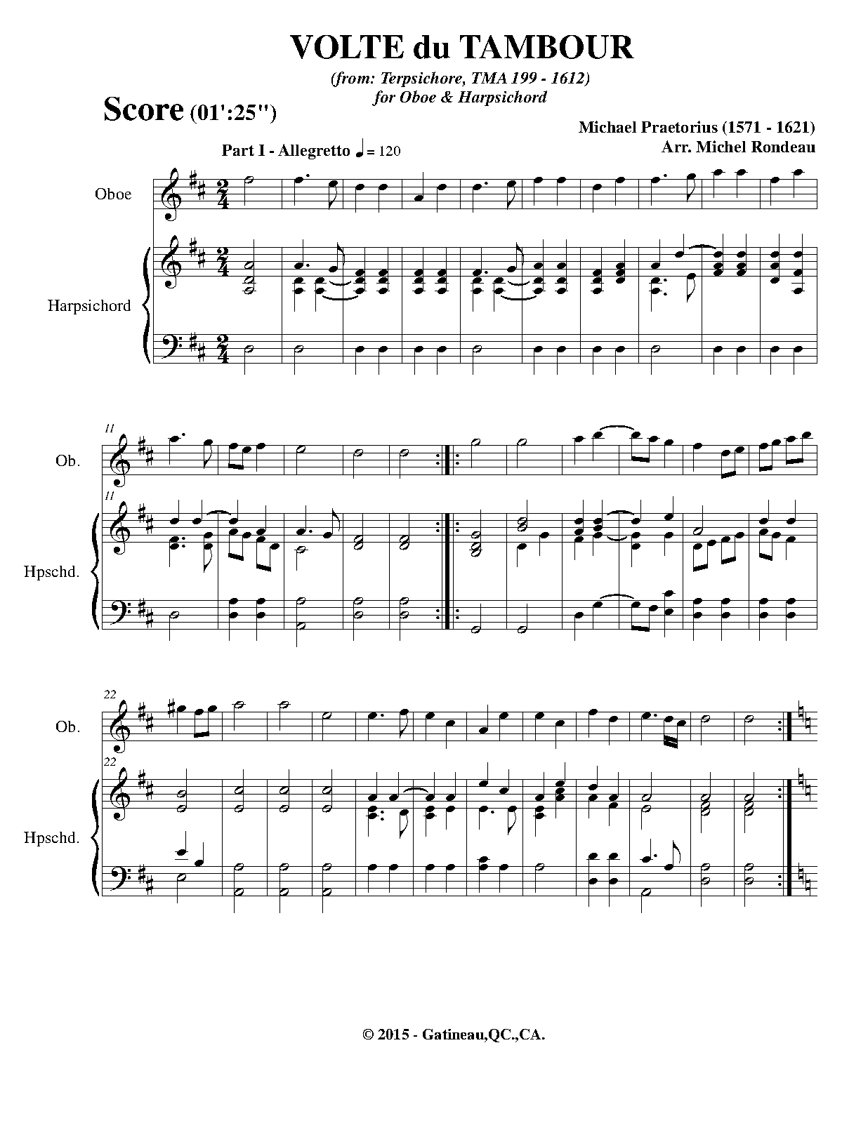 These pieces were assembled and arranged by Praetorius for his 1612 collection. It is unknown how many, or if any, of the works in the collection were actually composed by Praetorius as opposed to being popular dance tunes arranged by him. The instrumentation is not specified in the original, and simply listed as "à 5".