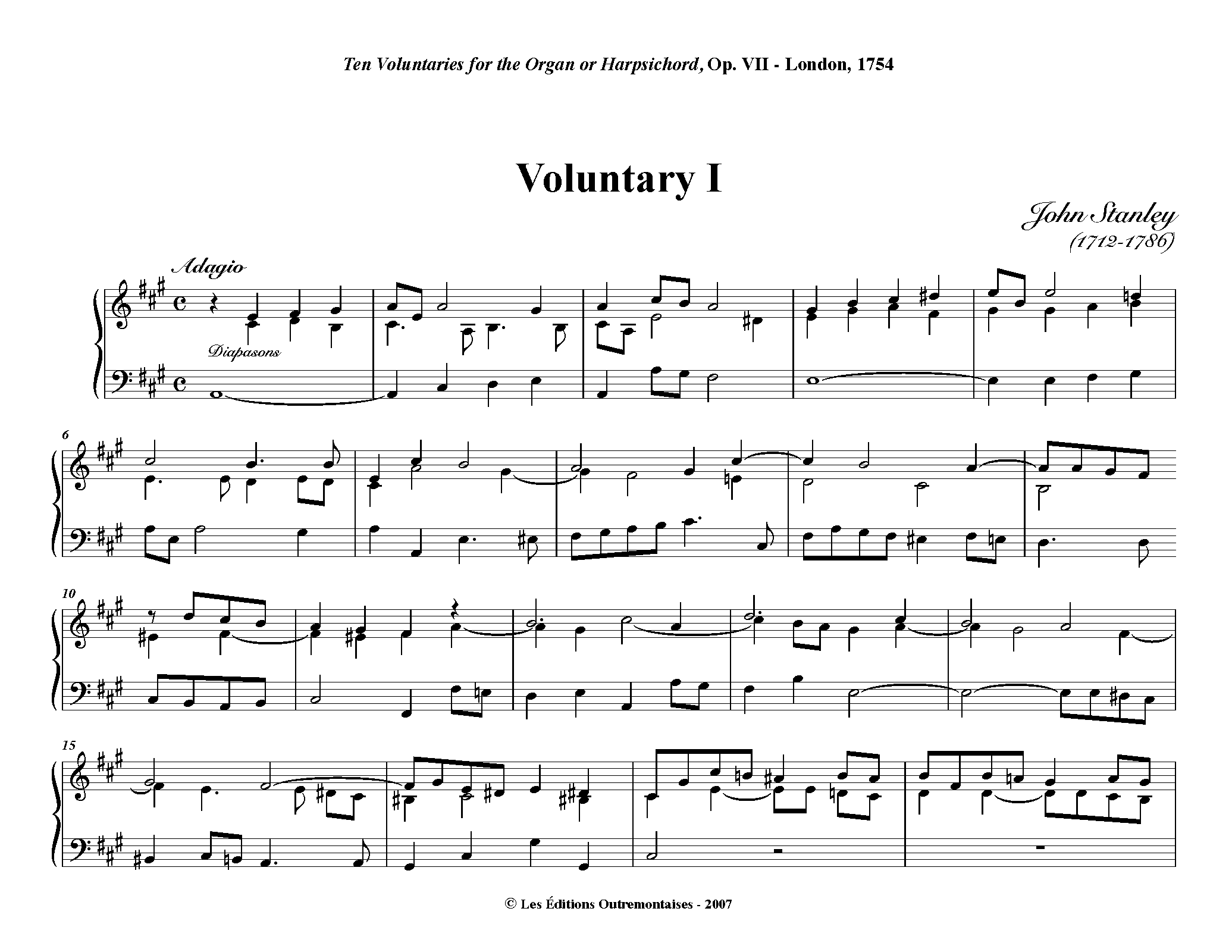 ⇒ 9 more: Voluntary II (C major) • Voluntary III (D minor) • Voluntary IV (D minor) • Voluntary V (D major) • Voluntary VI (F major) • Voluntary VII (E minor) • Voluntary VIII (A minor) • Voluntary IX (G major) • Voluntary X (F major)