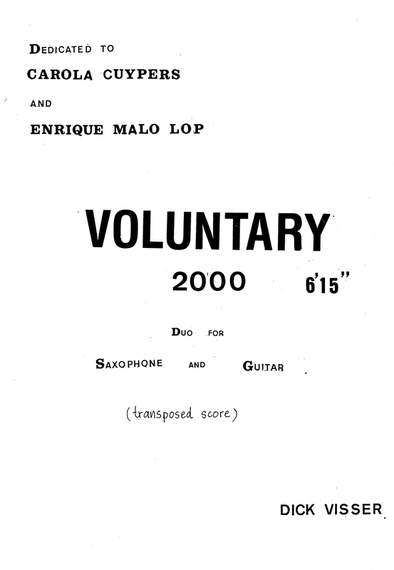 | Dedication | Carola Cuypers (saxophone) and Enrique Malo Lop (guitar) |