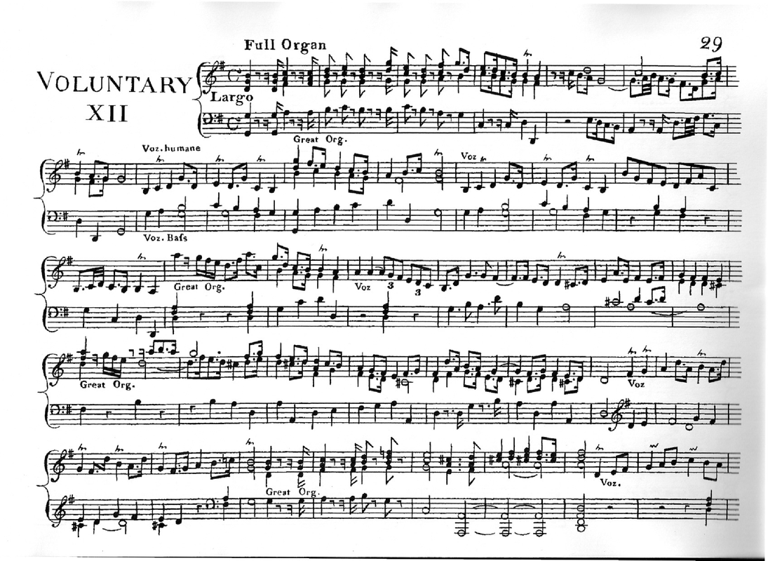 Twelve Voluntarys for the Organ or Harpsichord, Book II London: Unidentified publisher, n.d.(1776).