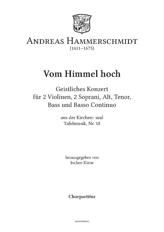 | Instrumentation | 2 sopranos, alto, tenor, bass, 2 violins, violone optional, continuo |