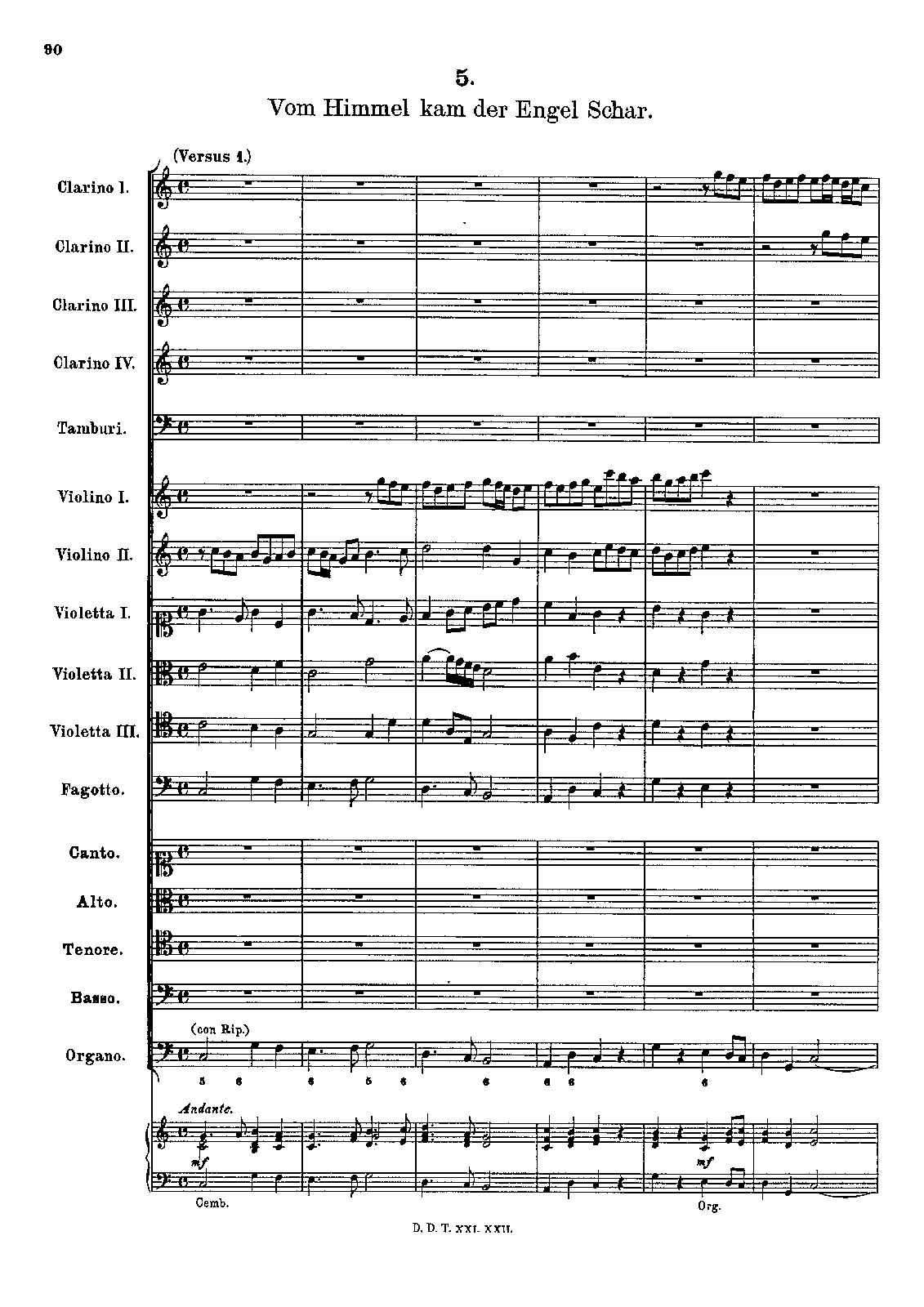 | Instrumentation | Voices: soprano, alto, tenor, bass Orchestra: bassoon + 4 clarini, drums + 2 violins, 4 violettas + continuo |