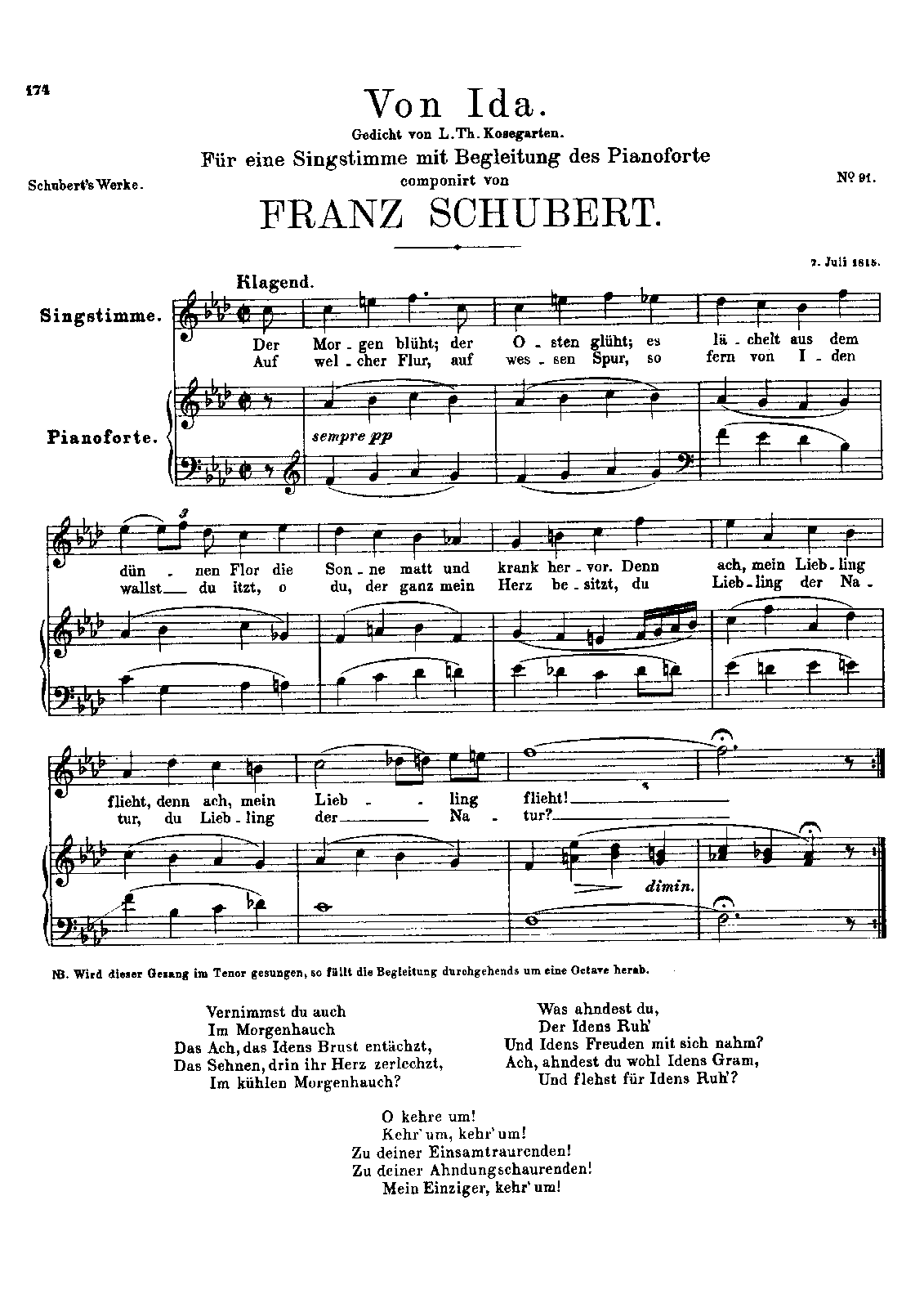 Publisher. Info. Schubert's Werke, Serie XX, Band 2. Jan. bis Juli 1815, No.91 (pp.174)