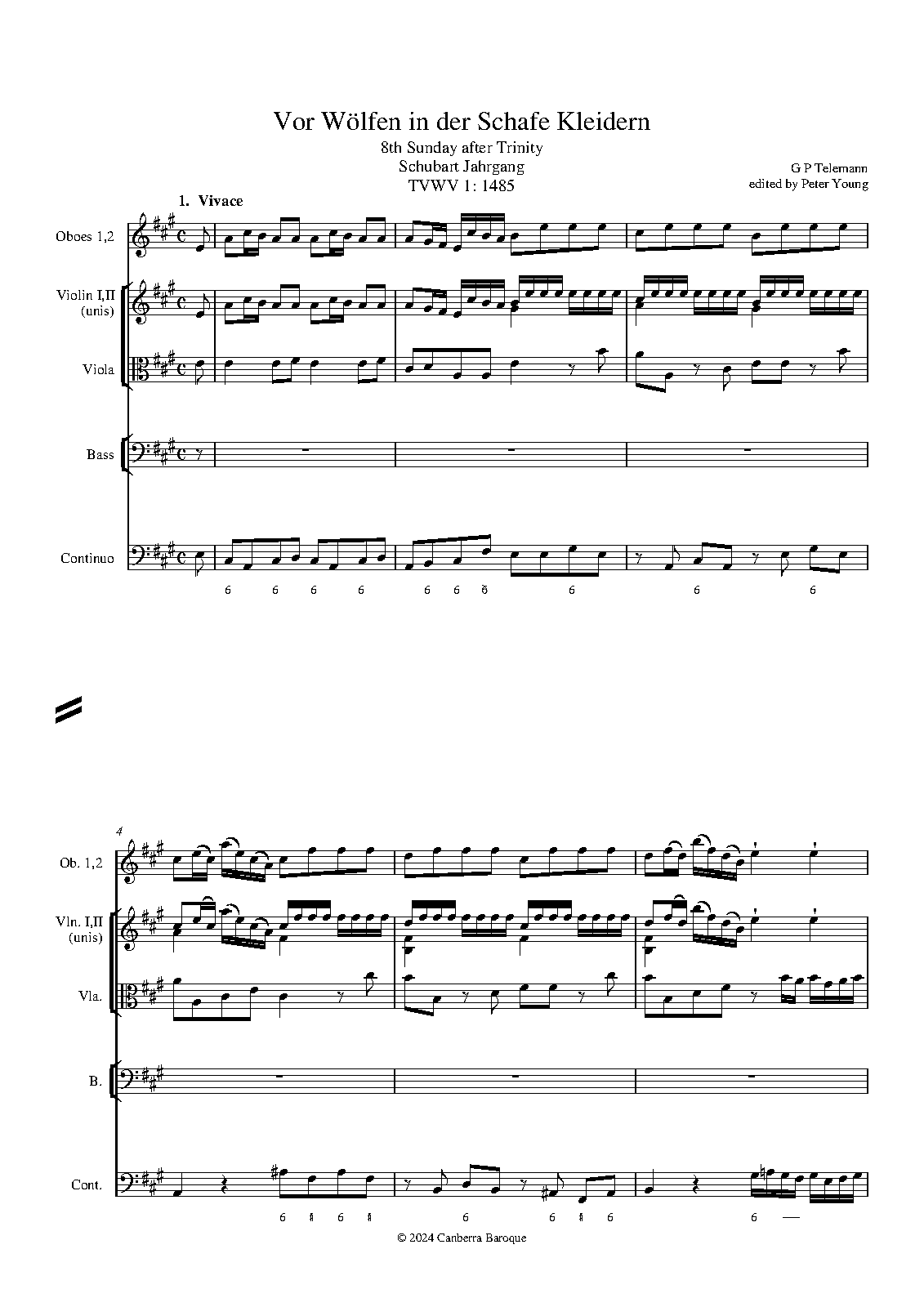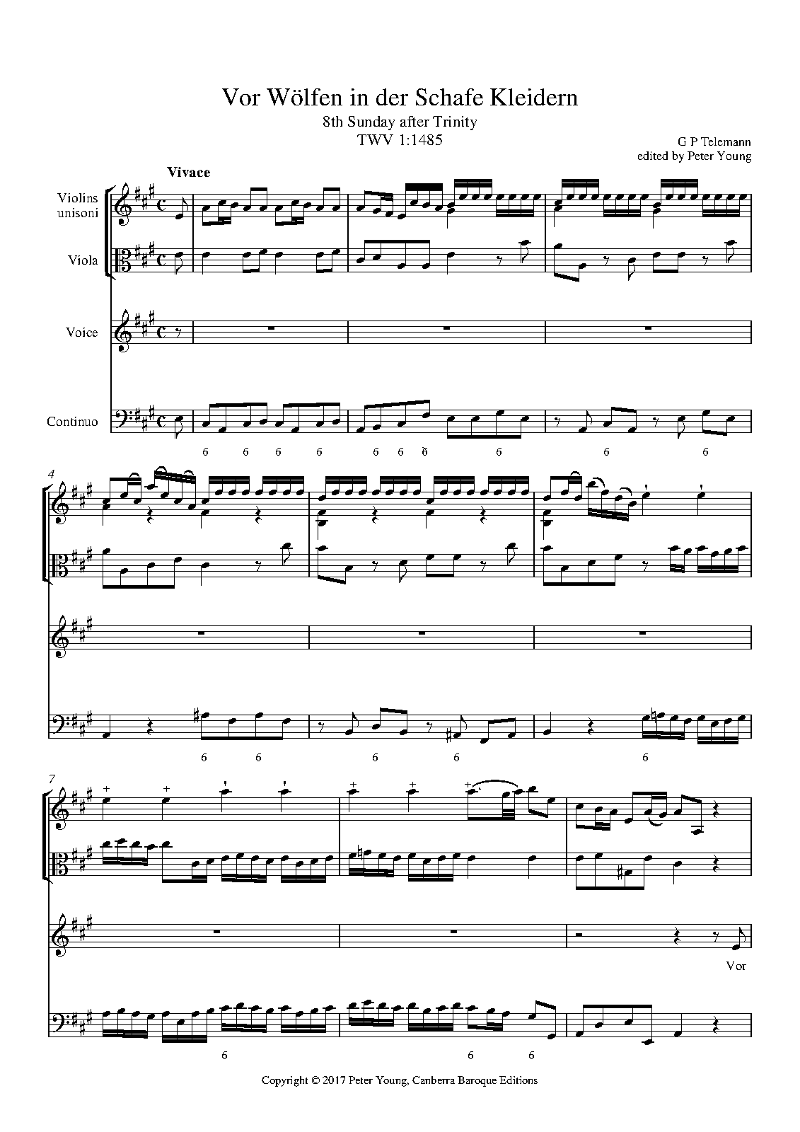 full version: SATB solos and chorus, 2 oboes, strings, continuo. Short version: voice (alto or baritone), violins, viola, continuo