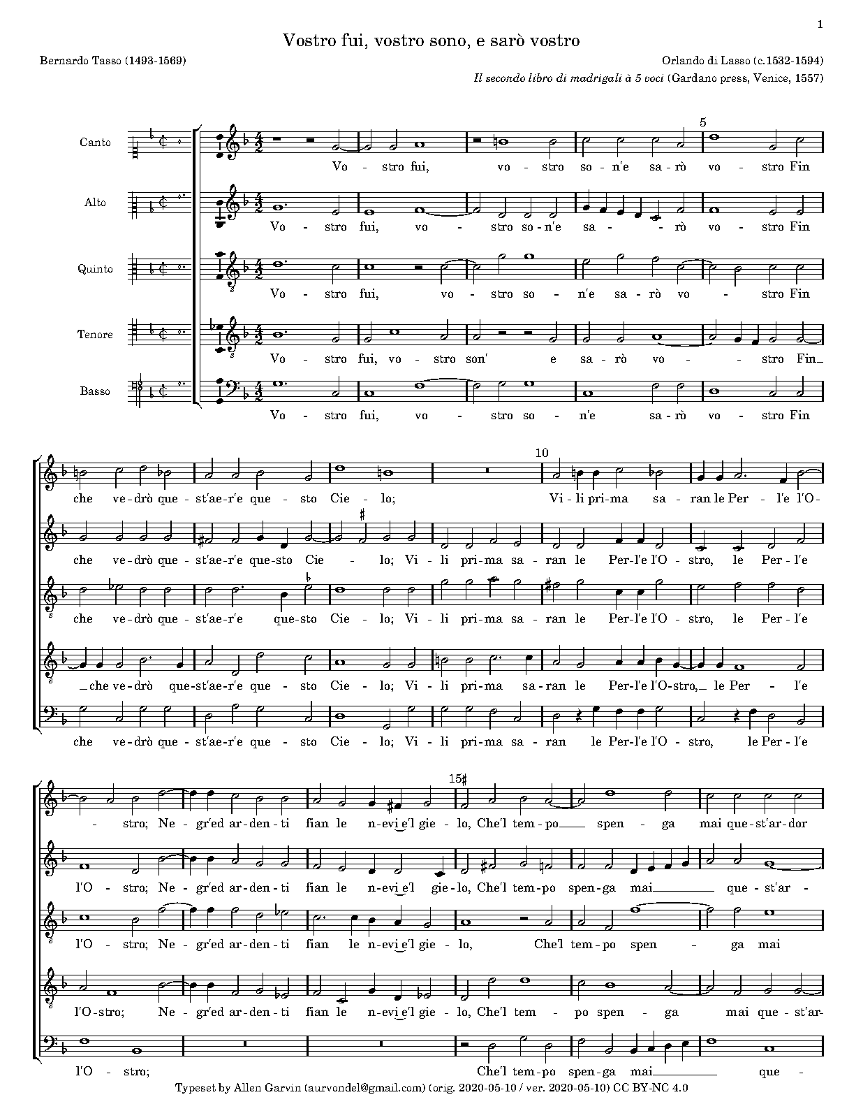 | Work Title | Vostro fui, vostro sono |