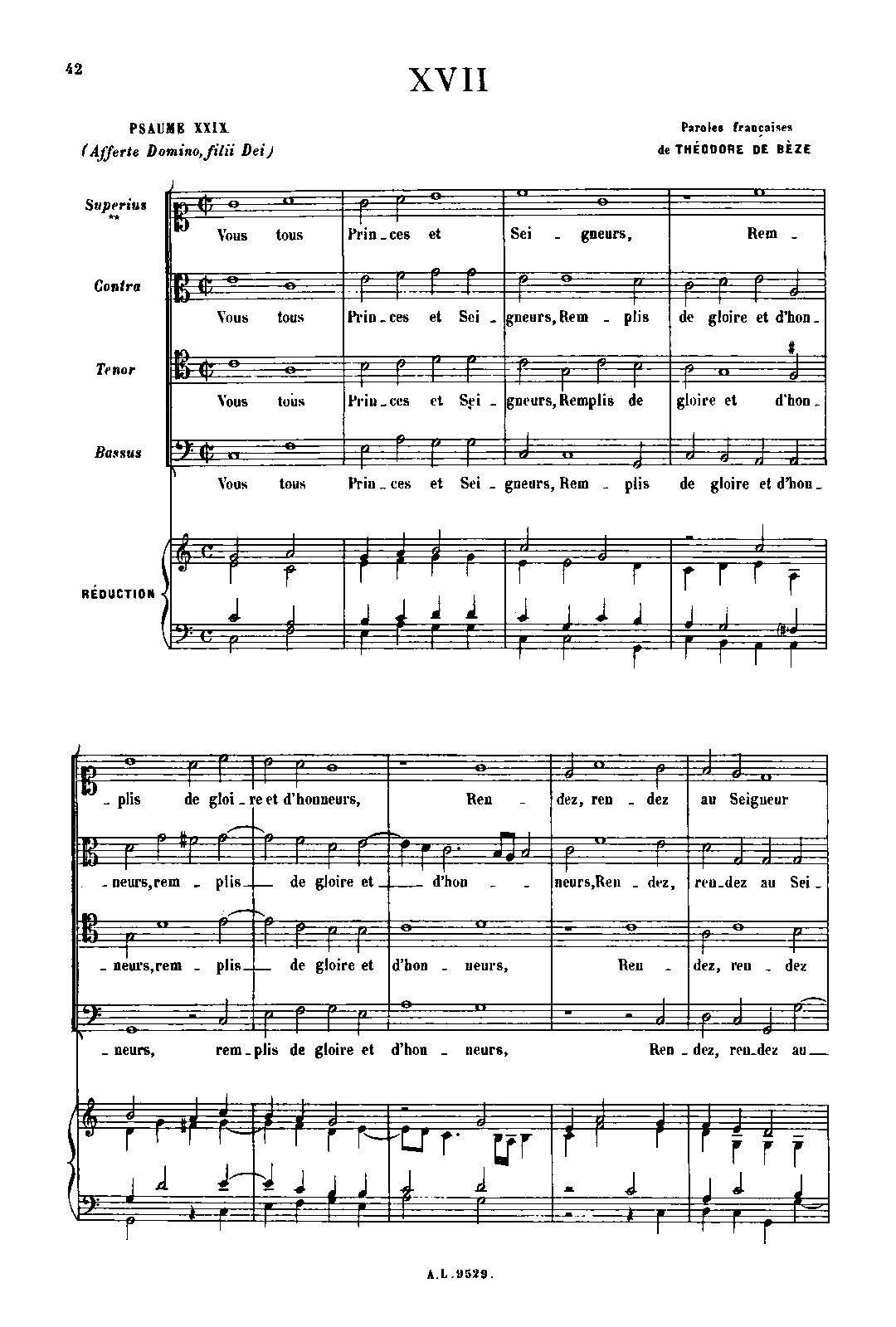 | First Publication. | 1568 in 150 Pseaumes de David (No.17) |
