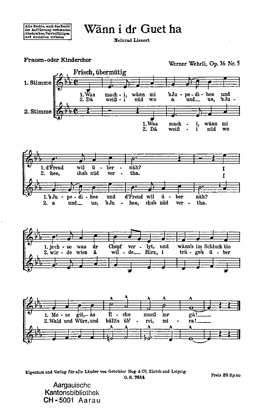 | Text Incipit | Was machi, wänn mi's Jupendihee und d'Freud wil über näh? |