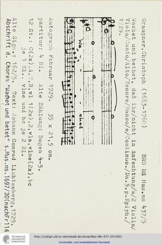 | Opus/Catalogue NumberOp./Cat. No. | GWV 1116/29 |