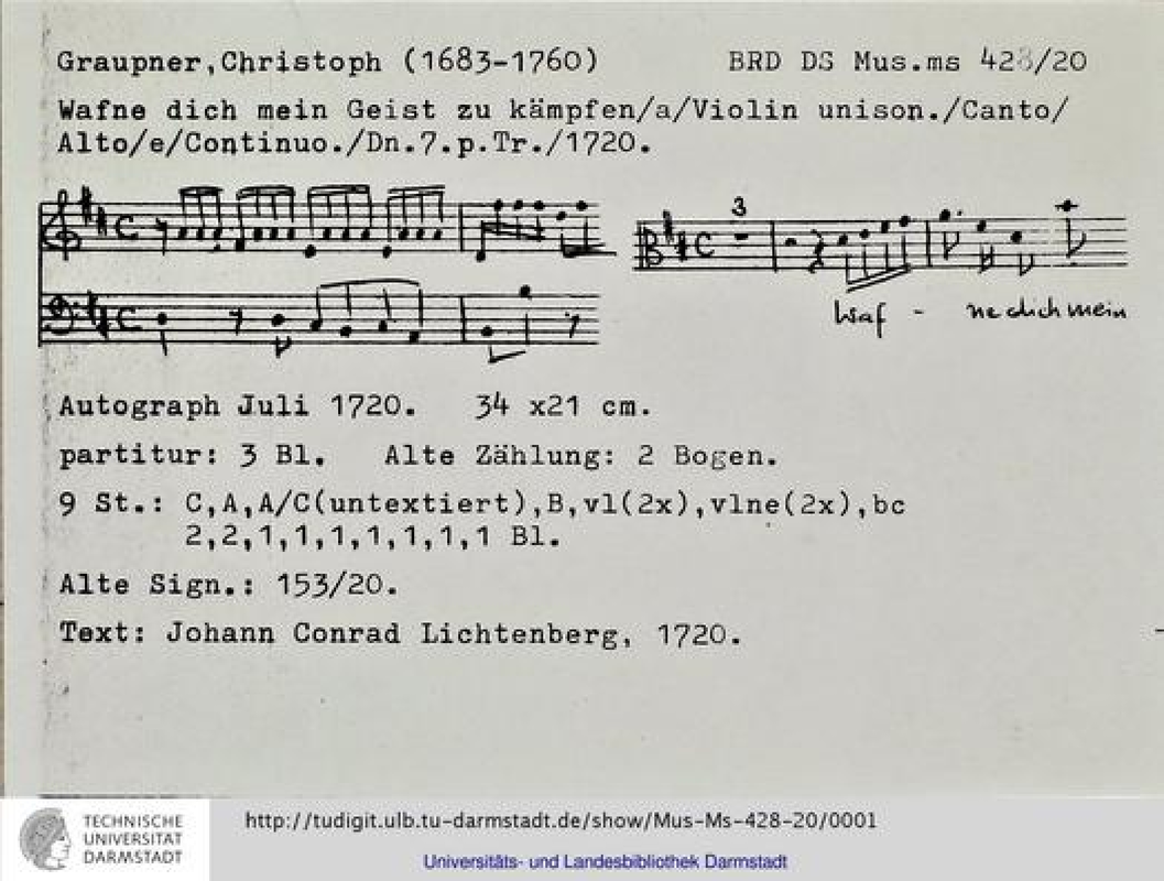 | Work Title | Waffne dich mein Geist zu kämpfen, GWV 1148/20 |