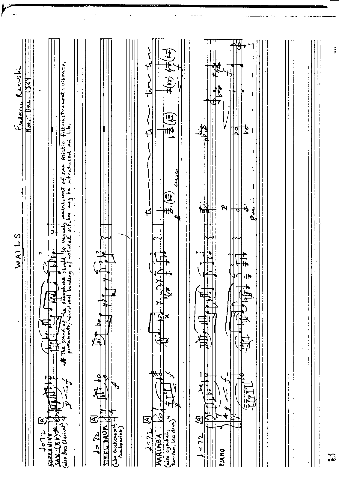 | Instrumentation | Saxophone/bass clarinet, steel drum/glockenspiel/tambourine, marimba/cymbals/bass drum, piano |