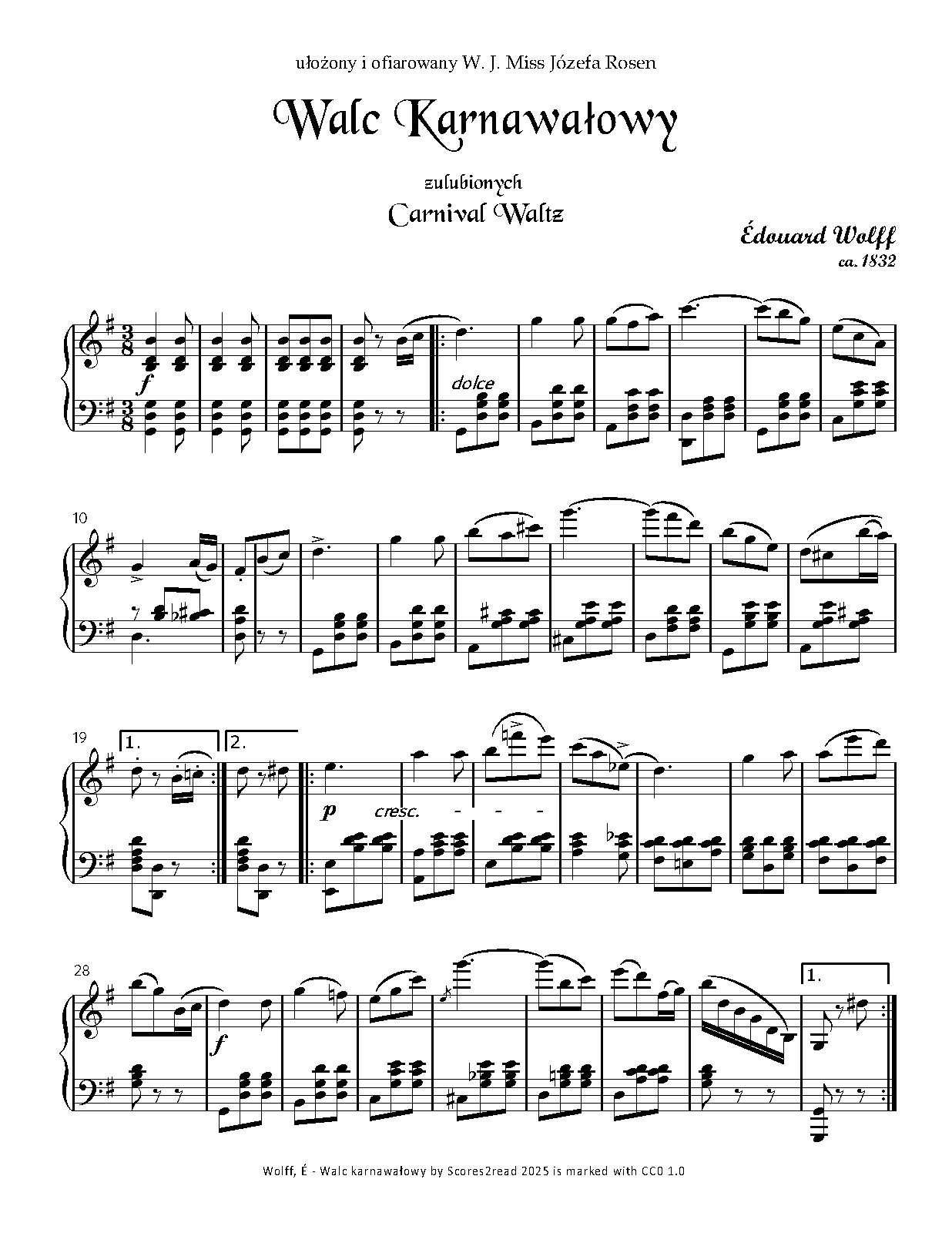 | Dedication | ułożony i ofiarowany W. J. Miss Józefa Rosen |