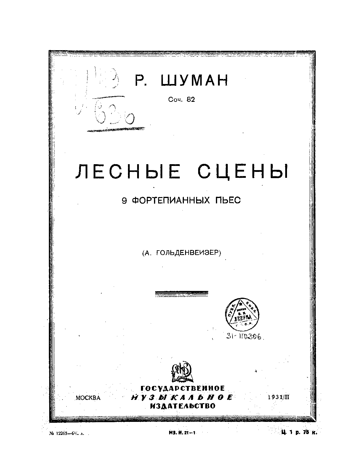 Publisher. Info. Moscow: Muzgiz, 1931. Plate 32041.