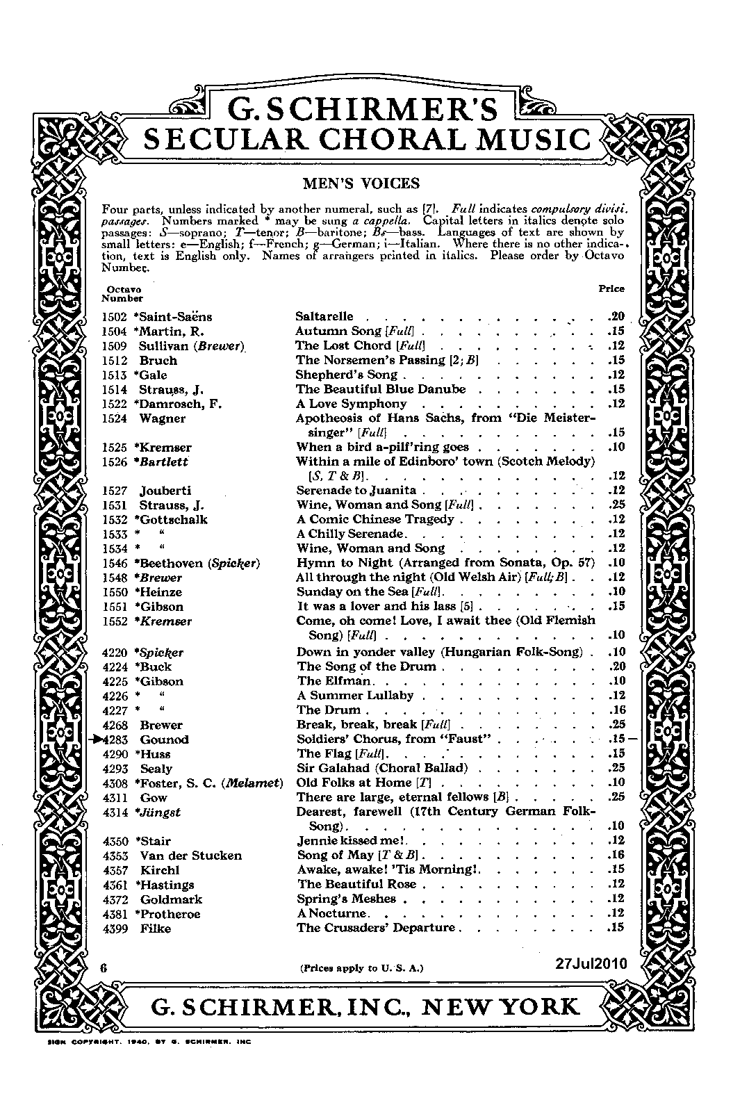 Publisher. Info. New York: G. Schirmer, 1881. Plate 2560.
