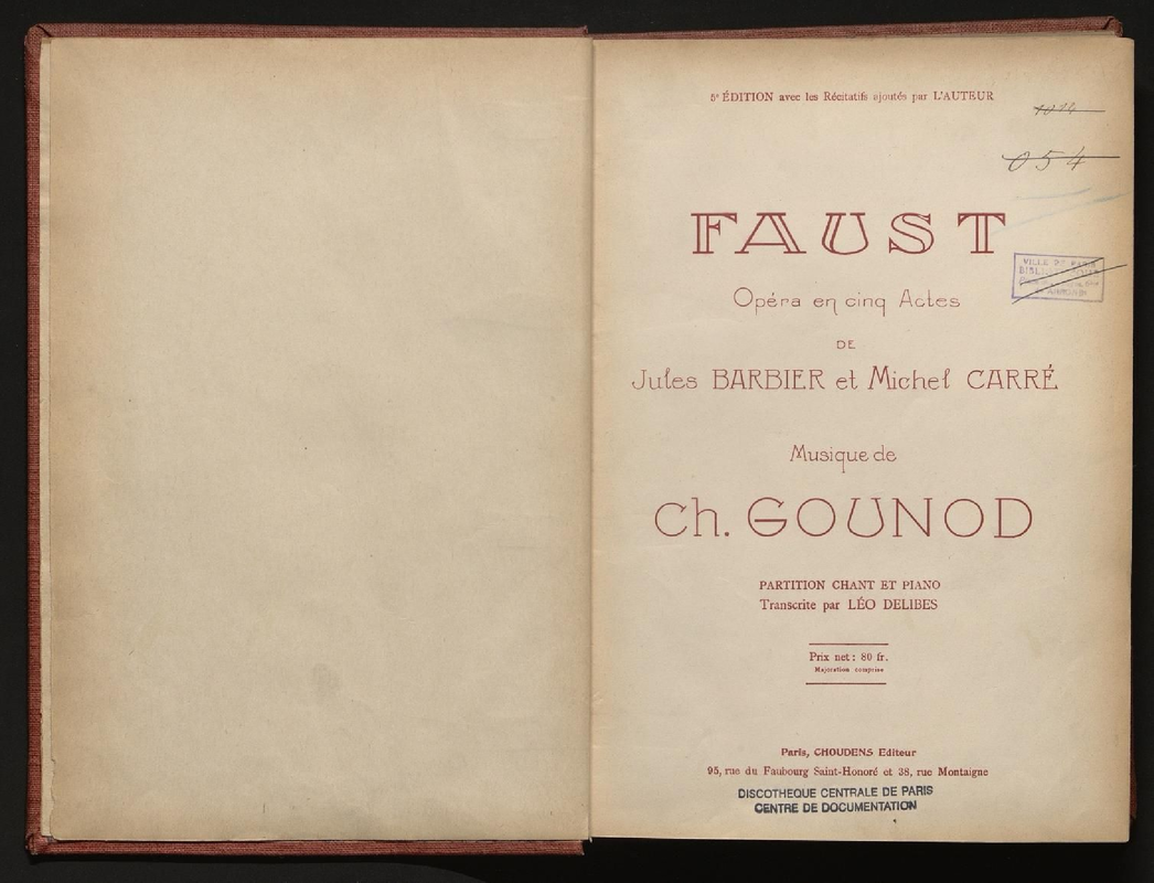 First Publication. 1859 - Paris: Choudens, Plate A.C. 664, 224 pages (vocal score)