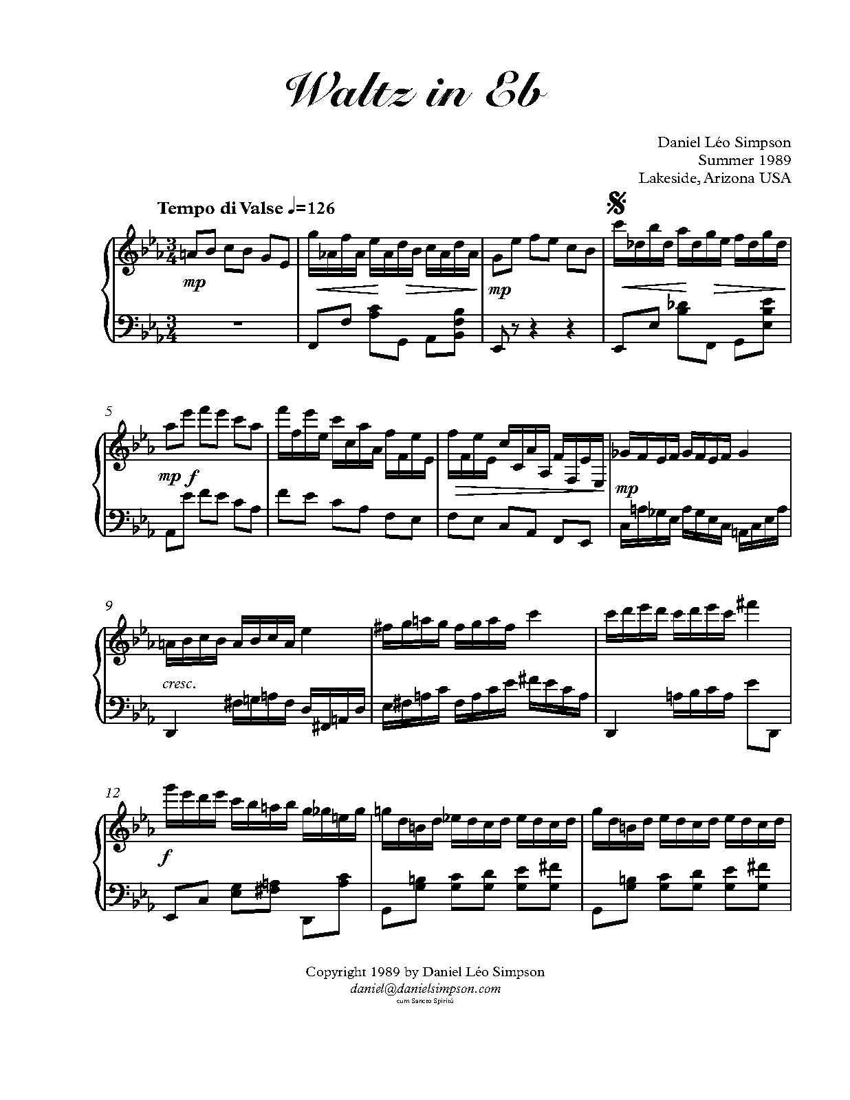 | Work Title | Waltz in Eb for Pianoforte |