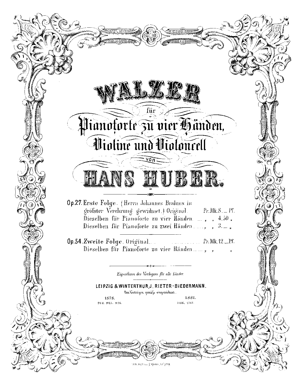 The first series of waltzes with this instrumentation were published as Walzer, Op.27.
