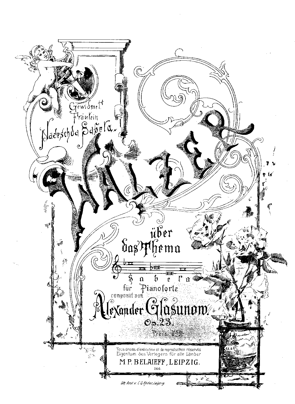 | Dedication | Gewidmett [sic] Fräulein Nadeschda Sabela |