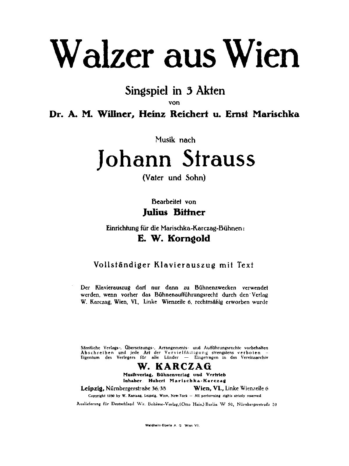 | Collaborative Work This work was co-authored by Erich Wolfgang Korngold and Julius Bittner, based on existing music by Johann Strauss Sr. and Johann Strauss Jr. |