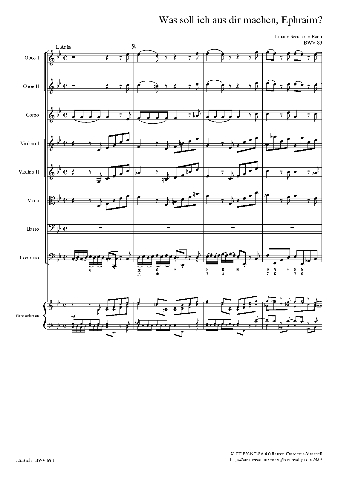 6 more: 2. Recitativo: 'Ja, freilich sollte Gott' • 3. Aria: 'Ein unbarmherziges Gerichte' • 4. Recitativo: 'Wohlan! mein Herze legt Zorn, Zank und Zwietracht hin' • 5. Aria: 'Gerechter Gott, ach, rechnest du?' • 6. Choral: 'Mir mangelt zwar sehr viel' • Engraving files (MuseScore)