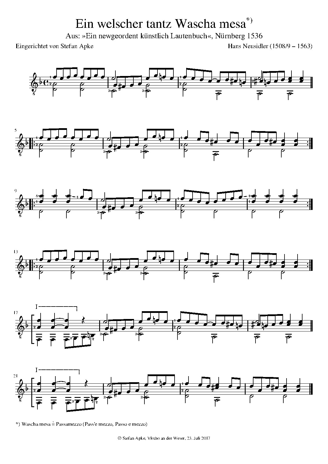 | First Publication | 1536 in Ein newgeordent künstlich Lautenbuch |