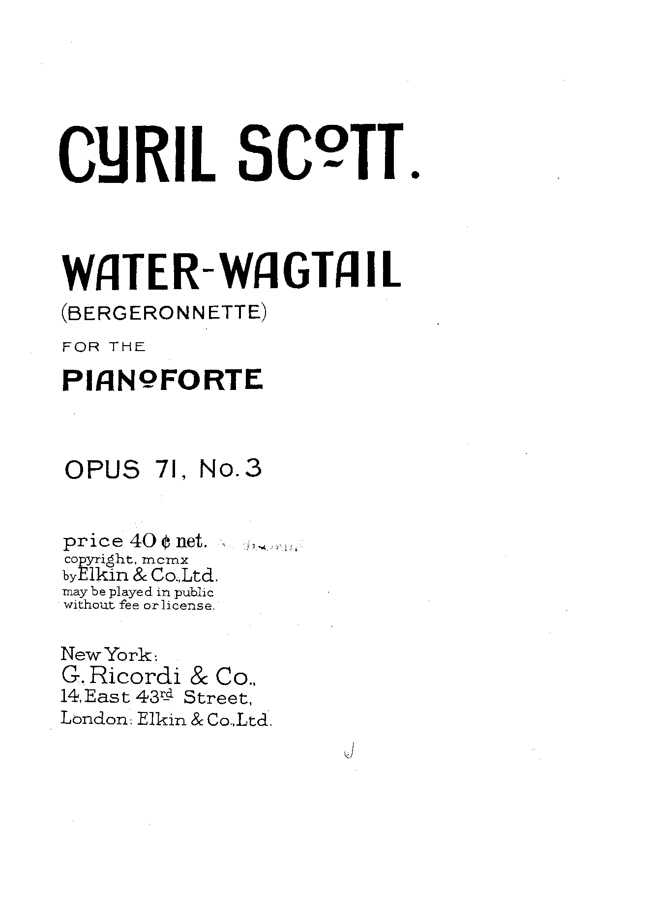 | First Performance. | 1911-03-22 — London, Bechstein Hall: Cyril Scott (piano) |