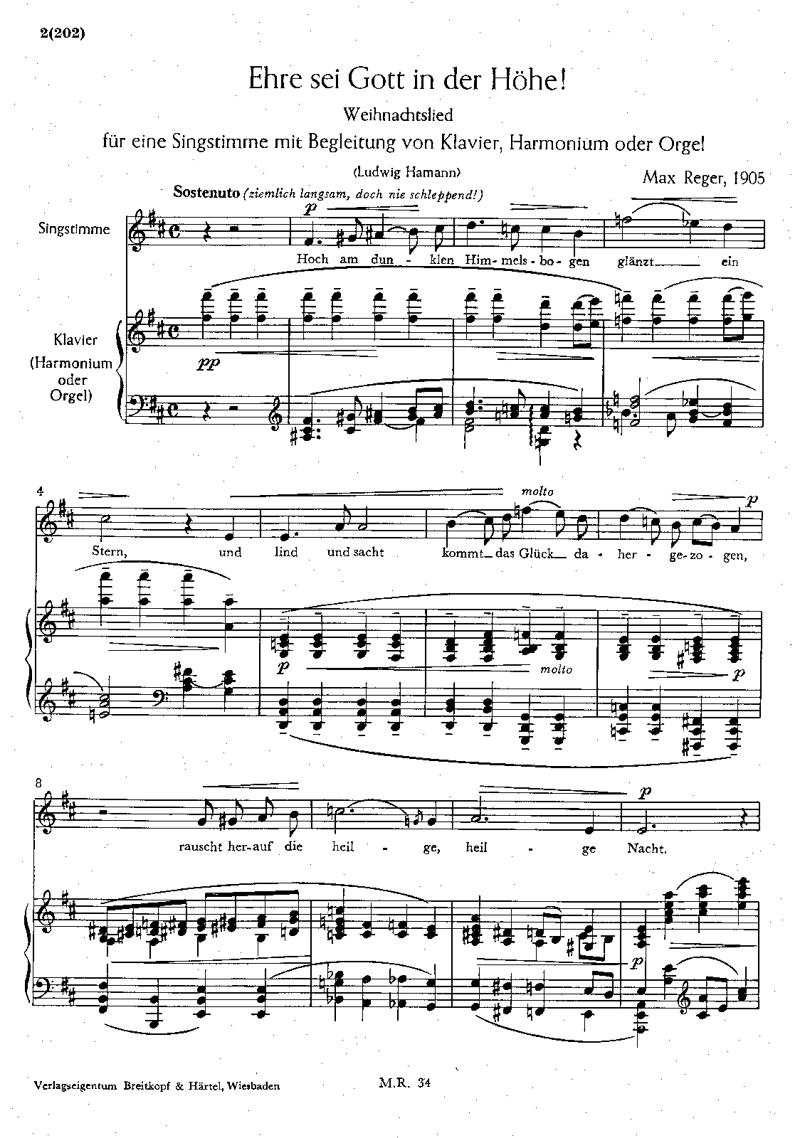 Max Reger: Sämtliche Werke, Band 34 (pp.202-207) Wiesbaden: Breitkopf und Härtel, 1967. Plate M.R. 34.URTEXT EDITION