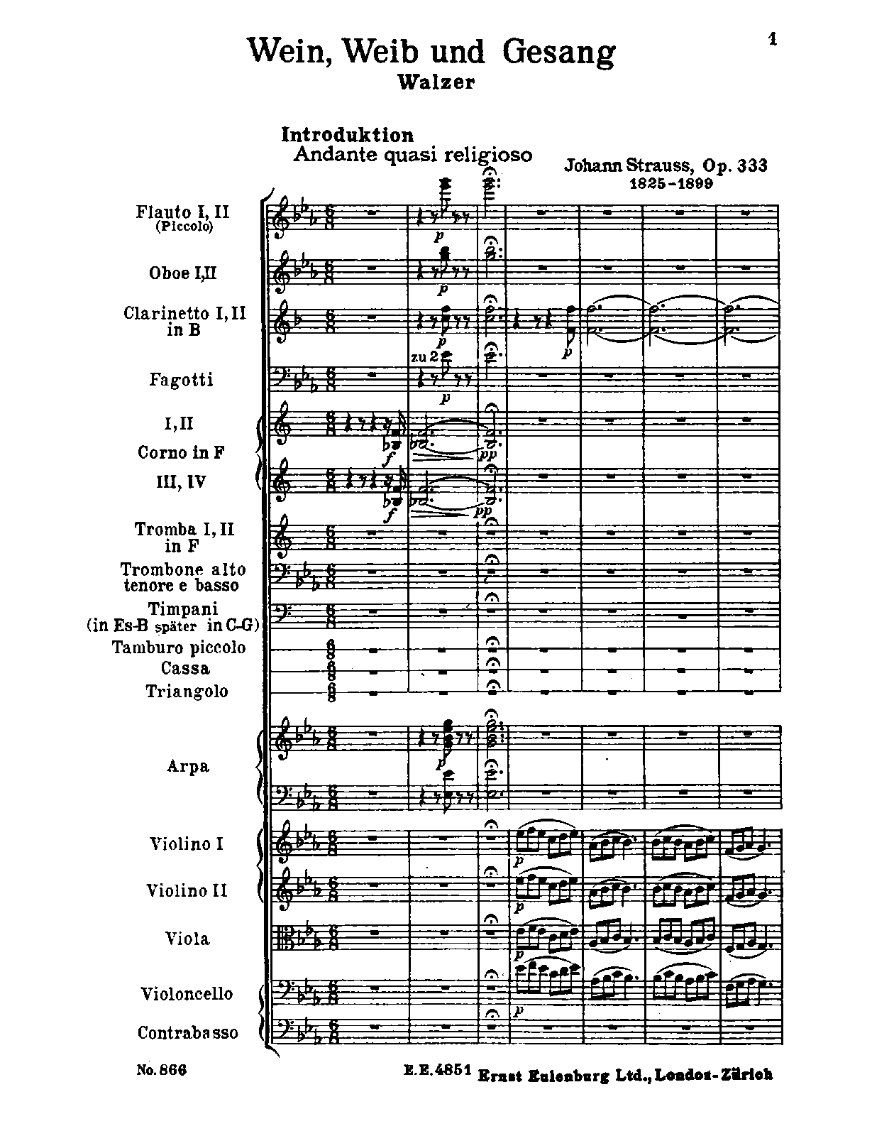Publisher. Info. Leipzig: Edition Eulenburg, No. 866, 1930. Plate E.E. 4851.