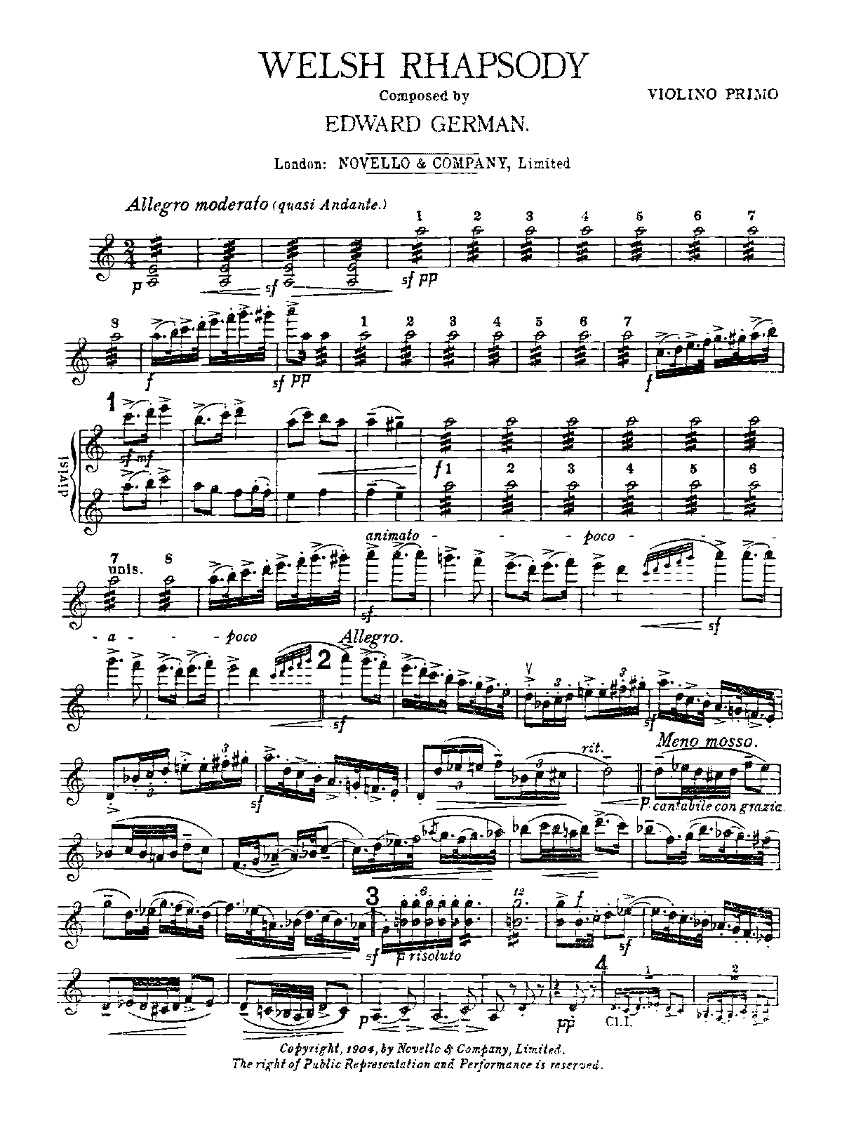 | First Performance. | 1904 (Cardiff) |