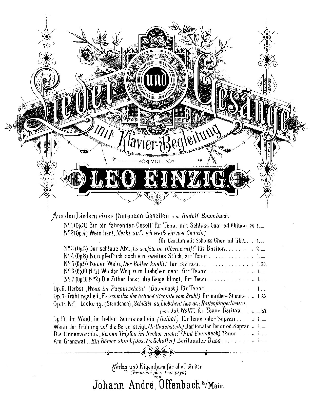 | Genre Categories | Songs; For voice, piano; For voices with keyboard; |
