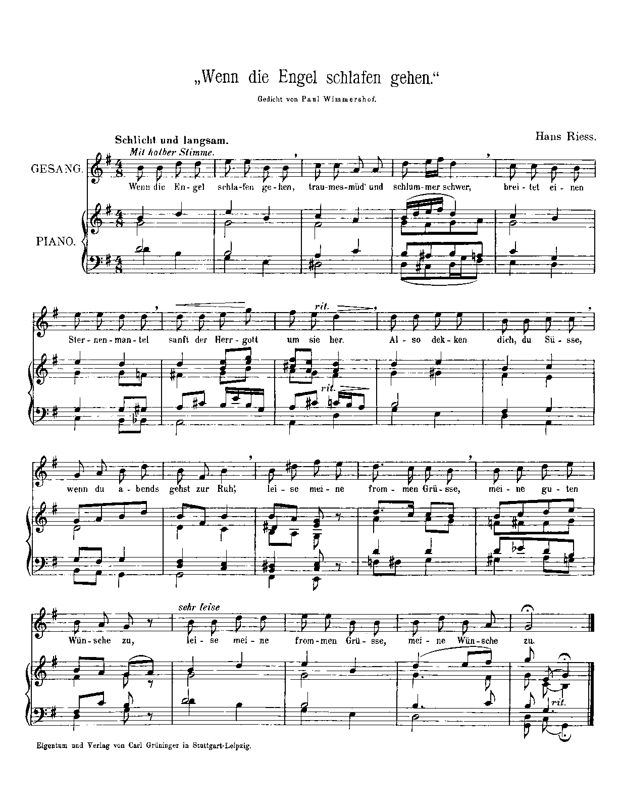 | Text Incipit | Wenn die Engel schlafen gehen |