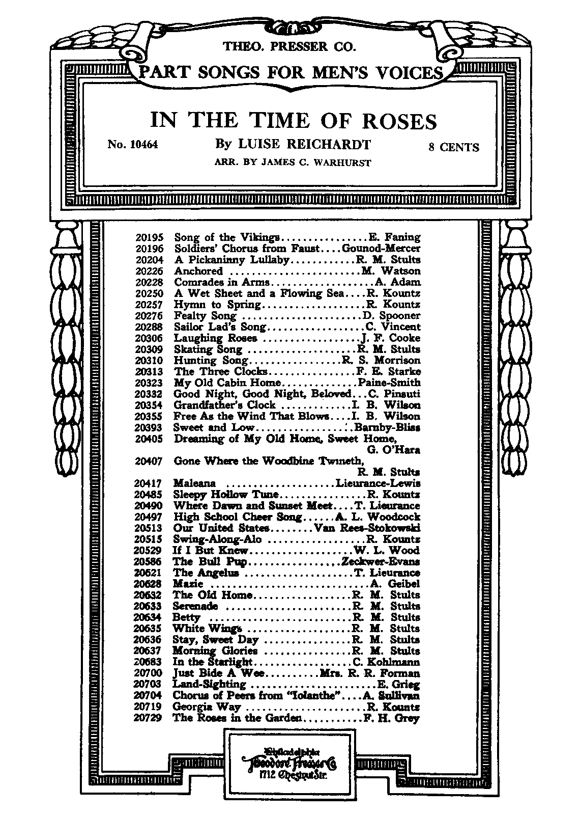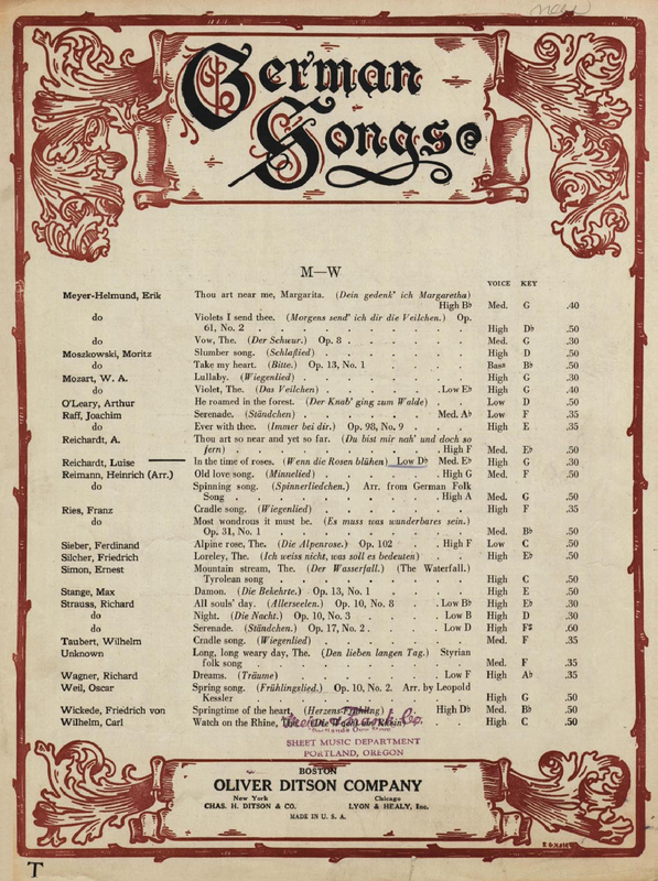 | Genre Categories | Songs; For voice, piano; For voices with keyboard; |