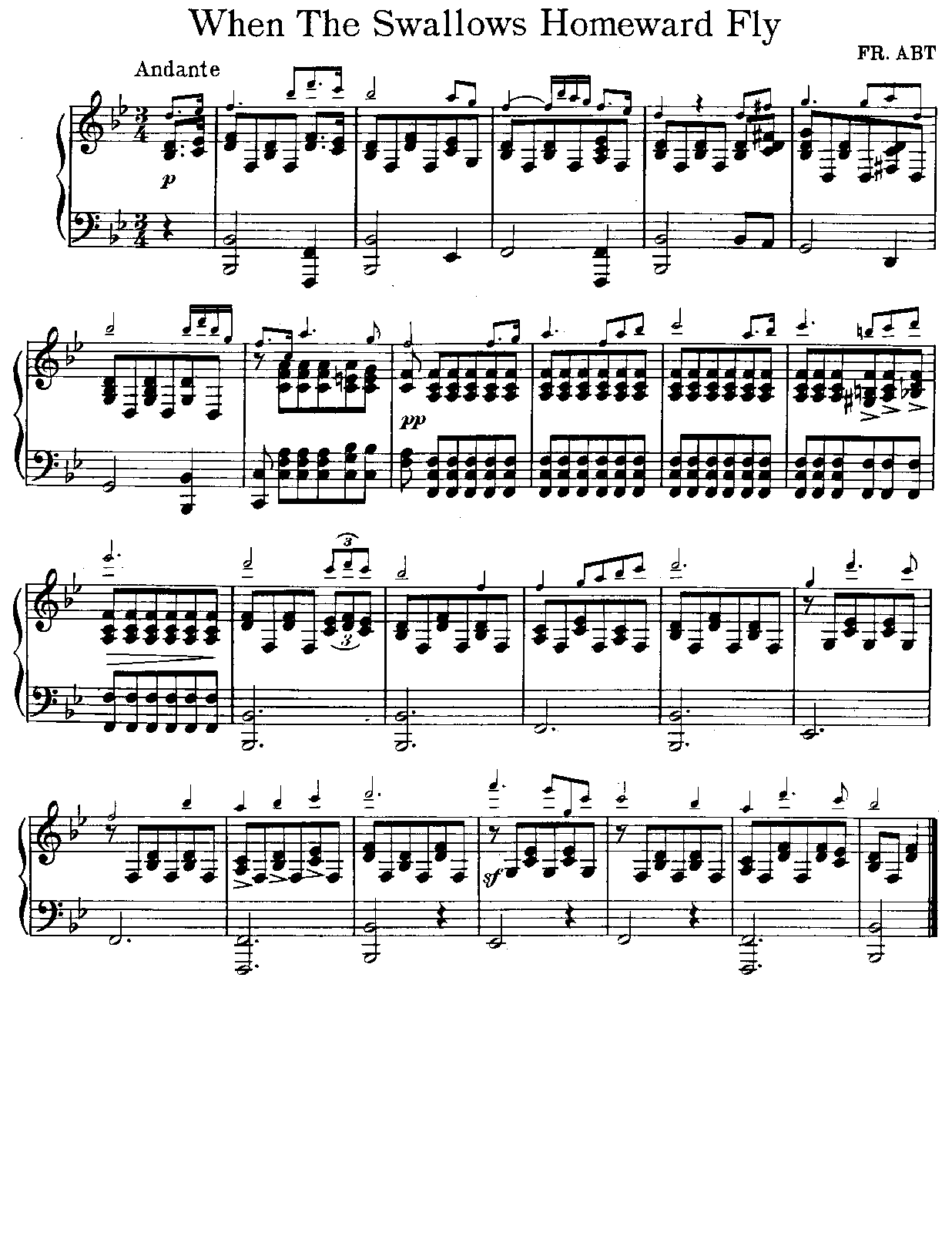 1. Wenn die Schwalben heimwärts ziehn (D♭ major)