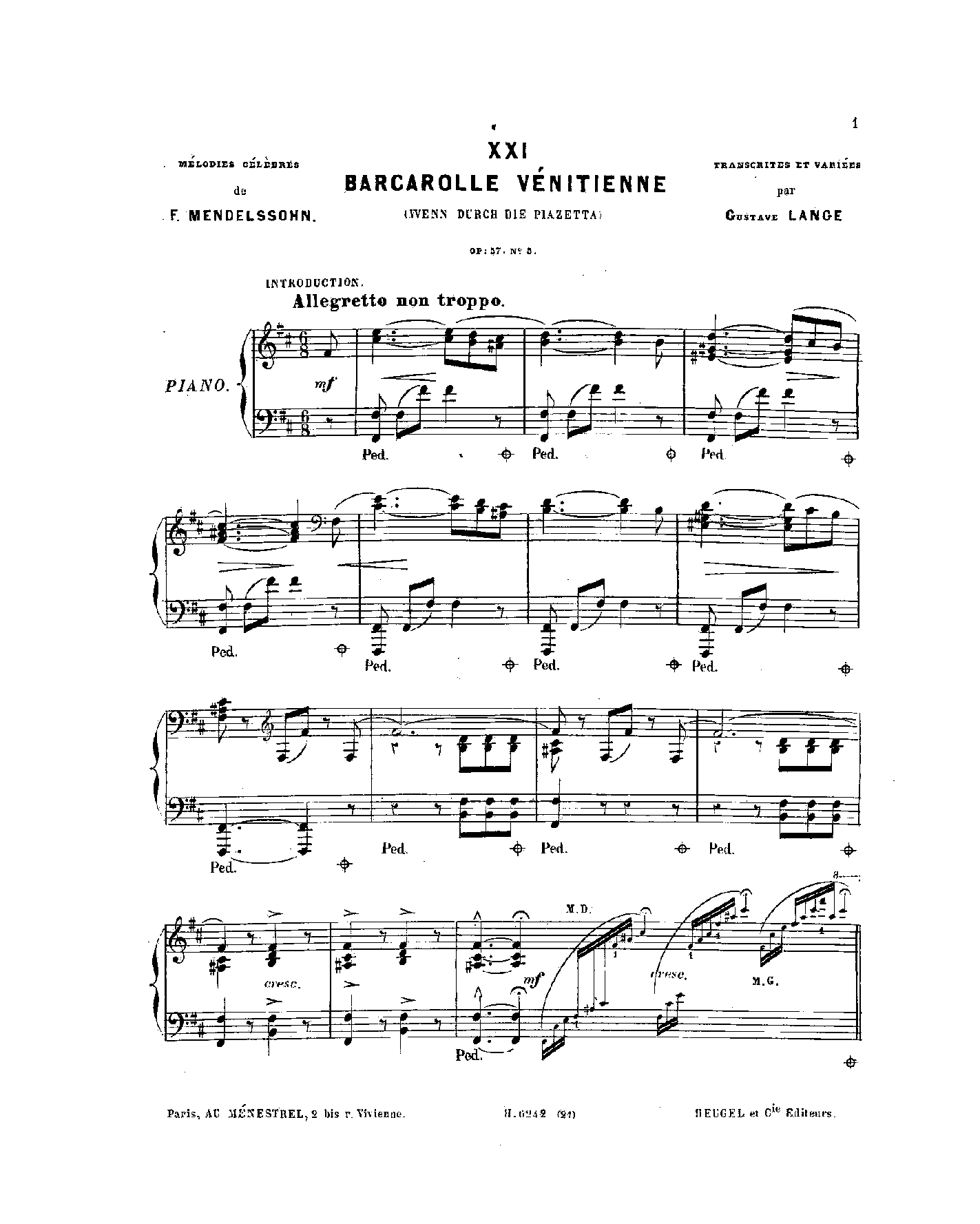 | Related Works | Based upon Mendelssohn's Venezianisches Gondellied (No.5) from 6 Lieder, Op.57 |