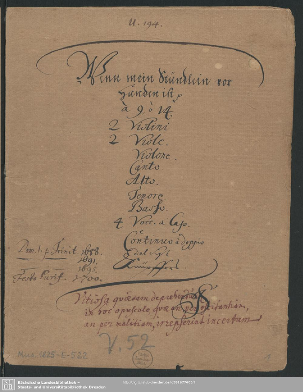 | Instrumentation | SATB soloists & chorus, 2 violins, 2 violas/viols, violone, continuo |