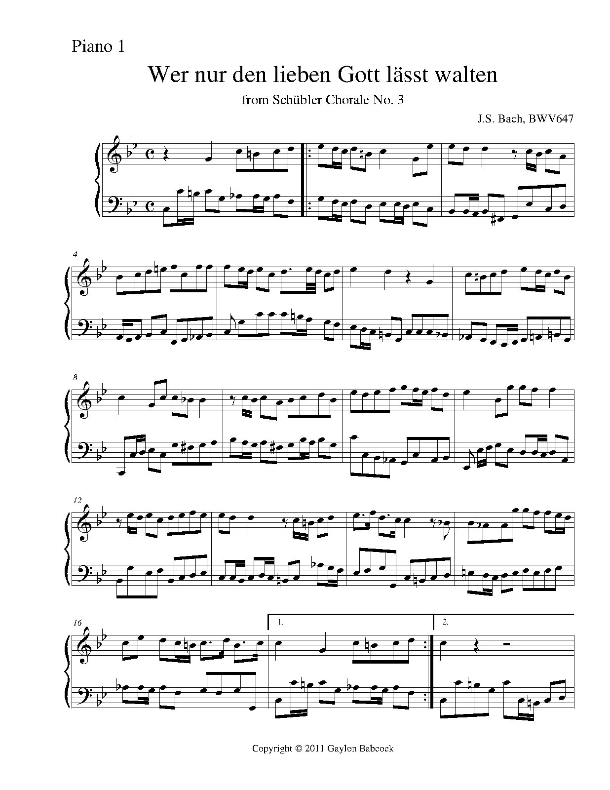 Related Works Wer nur den lieben Gott lässt walten, BWV 93, arranged from No.4 (soprano and alto)
