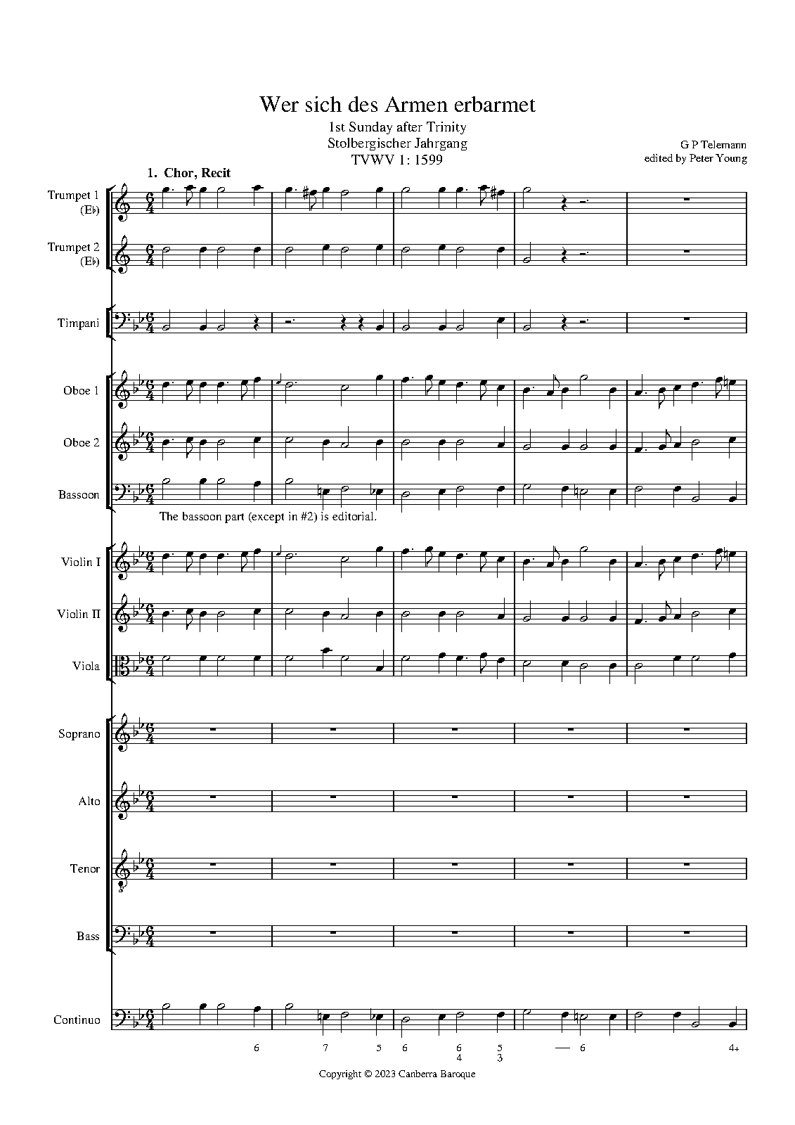 Extra Information From Stolbergischer Jahrgang; 1st Sunday after Trinity. Flutes replace oboes in one movement.