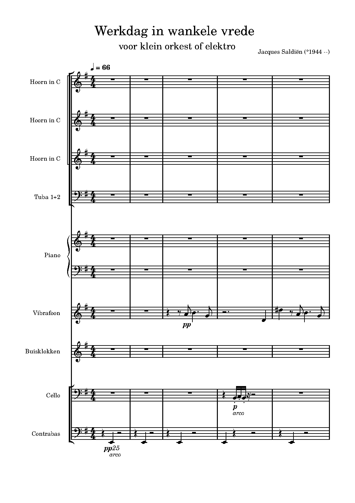 | Alternative. Title | Werkdag in wankele vrede voor klein orkest of elektronica |