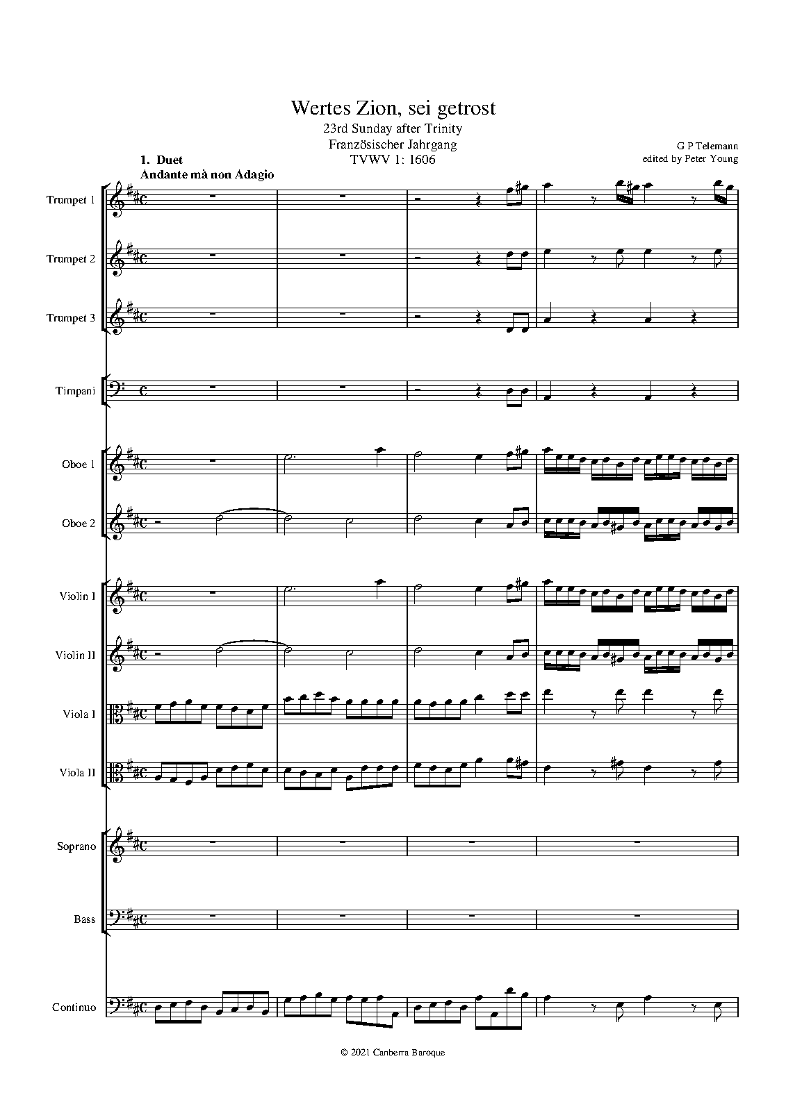 2 oboes, 3 trumpets, timpani, strings, continuo