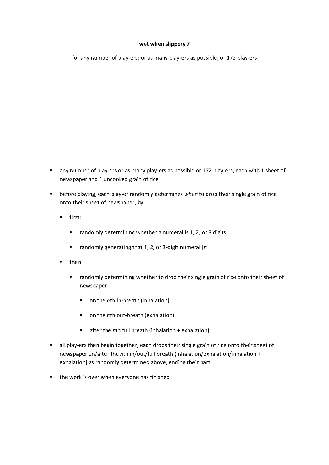 Instrumentation any number of play-ers or as many play-ers as possible or 172 play-ers, each with 1 sheet of newspaper and 1 uncooked grain of rice