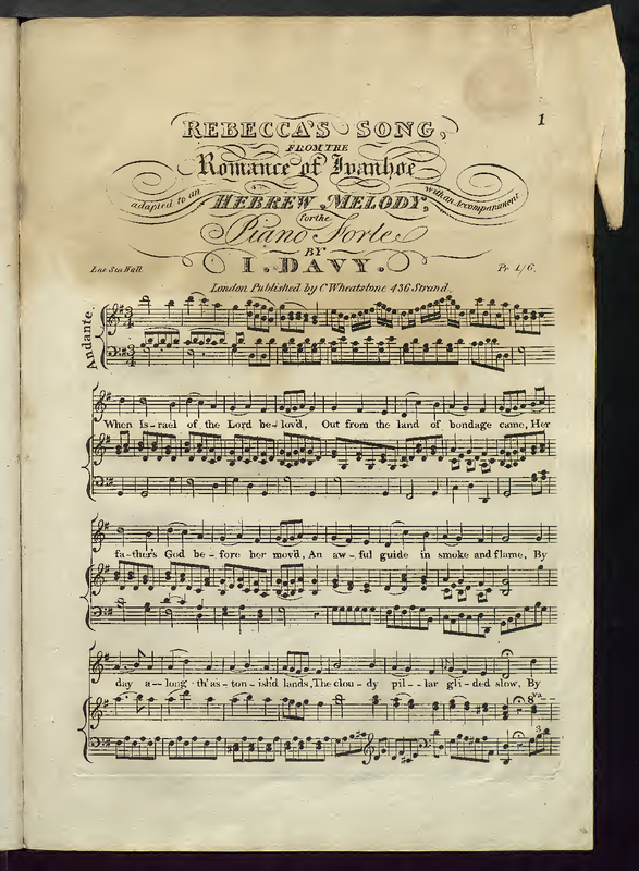 | Alternative. Title | Rebecca's Song, from the Romance of Ivanhoe, adapted to an Hebrew Melody, with an accompaniment for the piano forte |