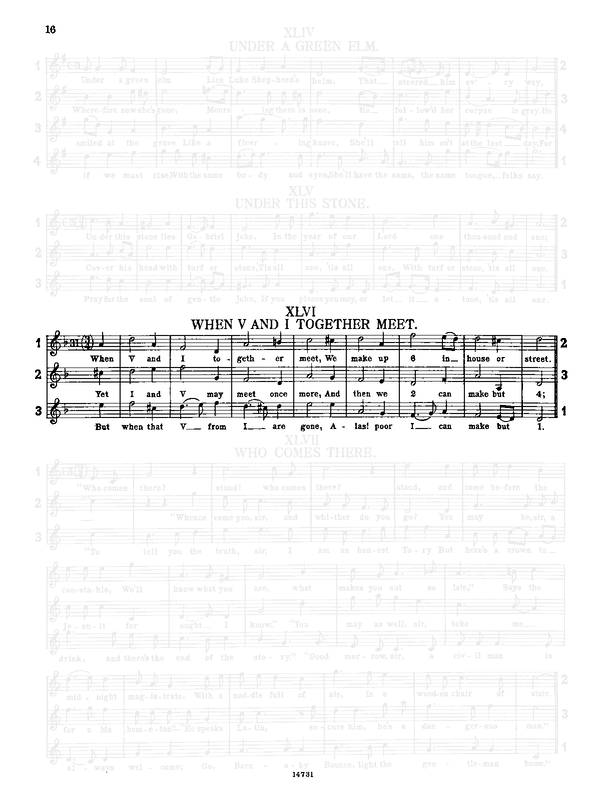 | Genre Categories | Catches; For 3 voices; For unaccompanied voices; |