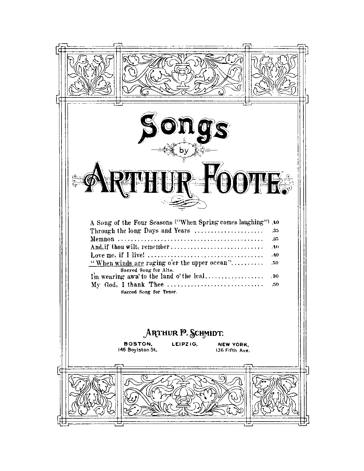 | First Publication. | 1898 – Boston: Arthur P. Schmidt |