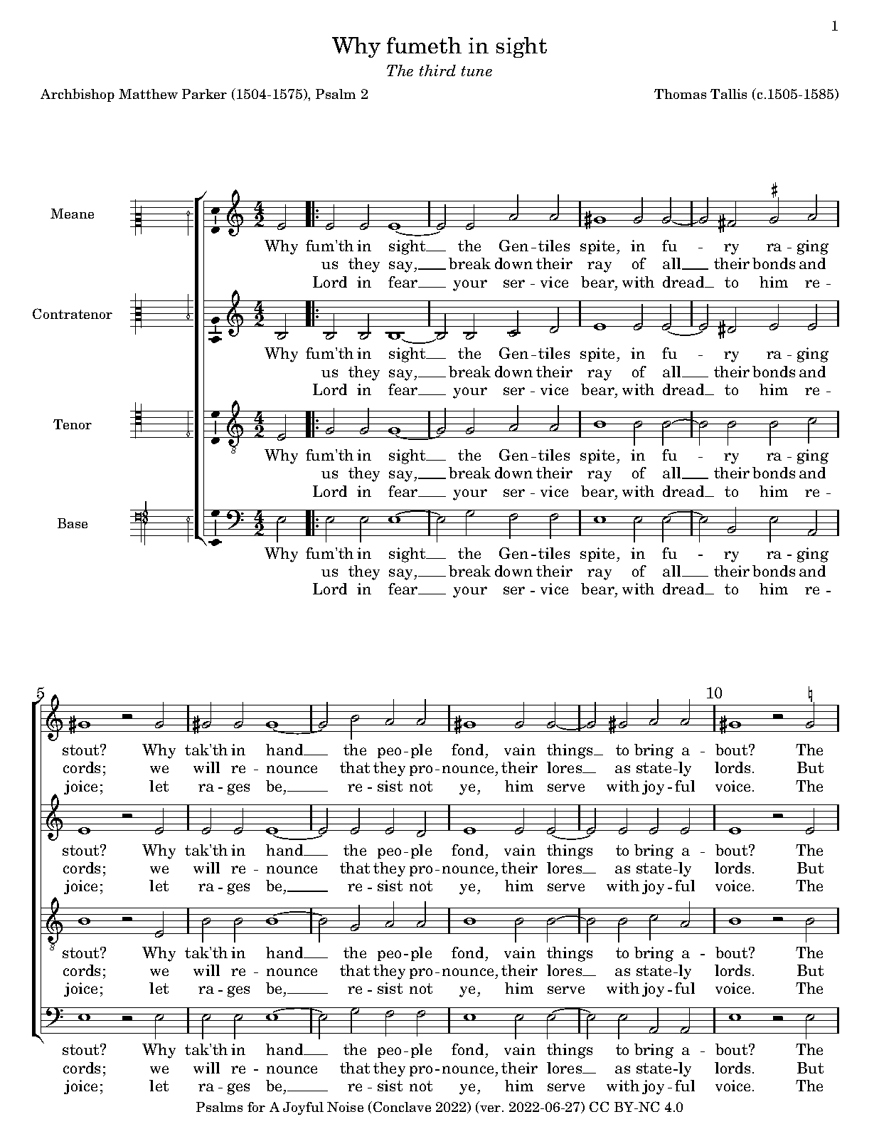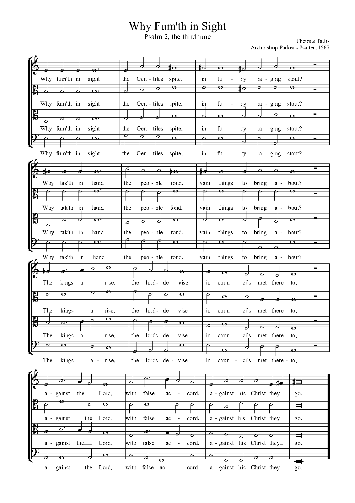 | Librettist | Matthew Parker (1504–1575), after Psalm II |