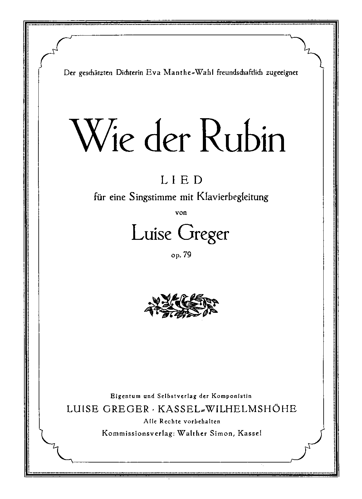 | Dedication | Der geschätzten Dichterin Eva Manthe-Wahl freundschaftlich zugeeignet |
